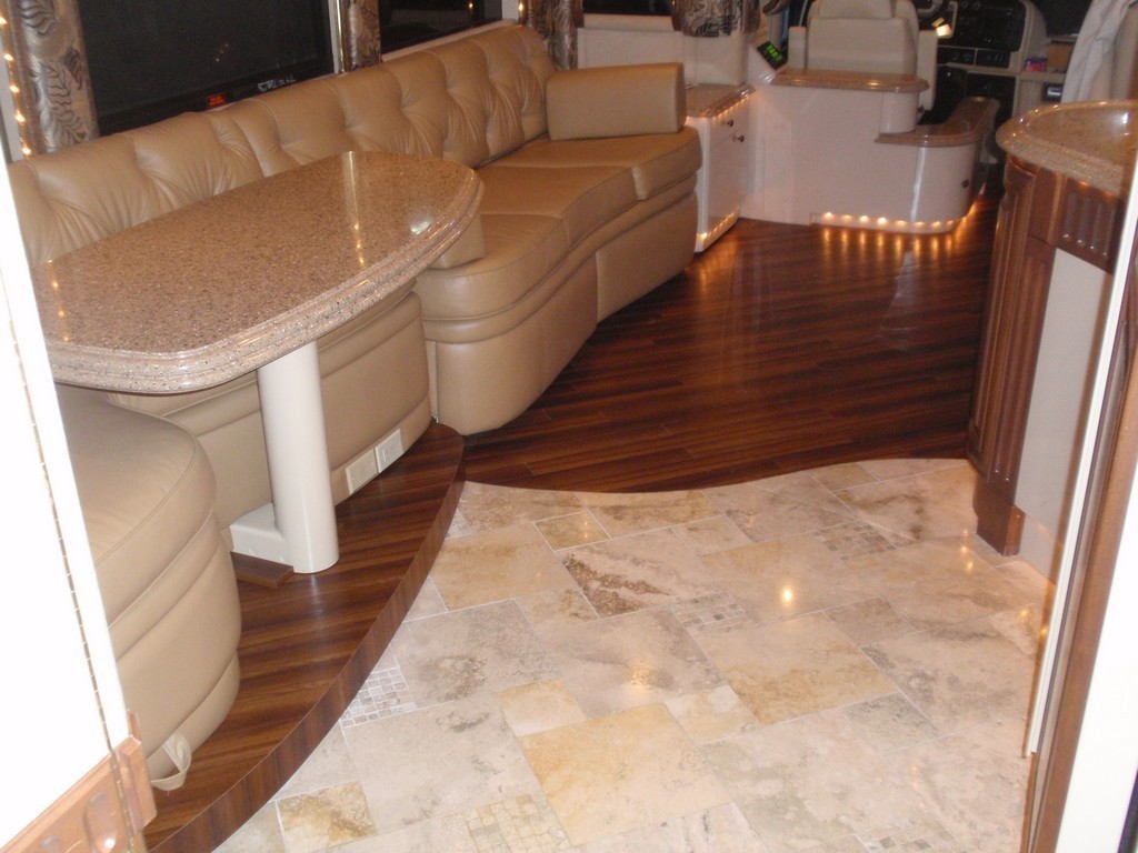 02 Prevost XL II Liberty New Vinyl Floor installed dinette transition by Excalibur Coach - Floor - Prevost Motorhome - H3-45 - XL