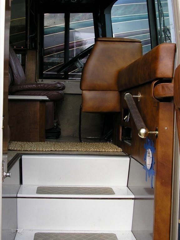 041b Prevost Motrohome Class A -New upholstery on stairwell and door panel by Excalibur Coach