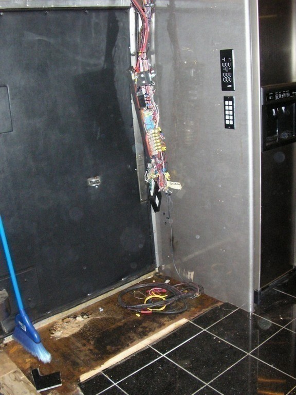 003 Prevost XL II Wheelchair Door Removed Before New Dinette installed by Excalibur Coach. Also Motorhome, Class A, H3-45