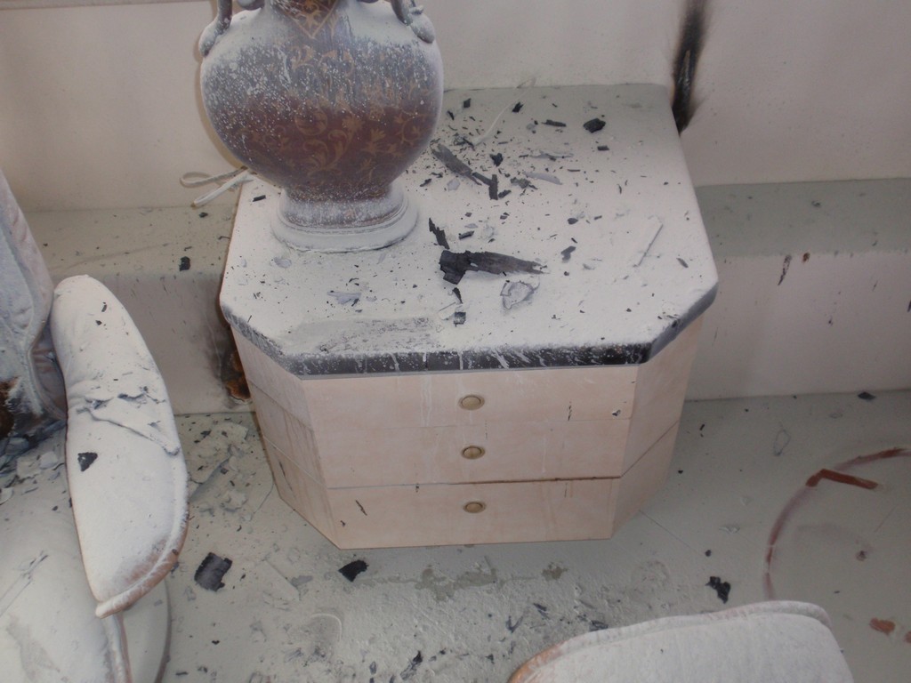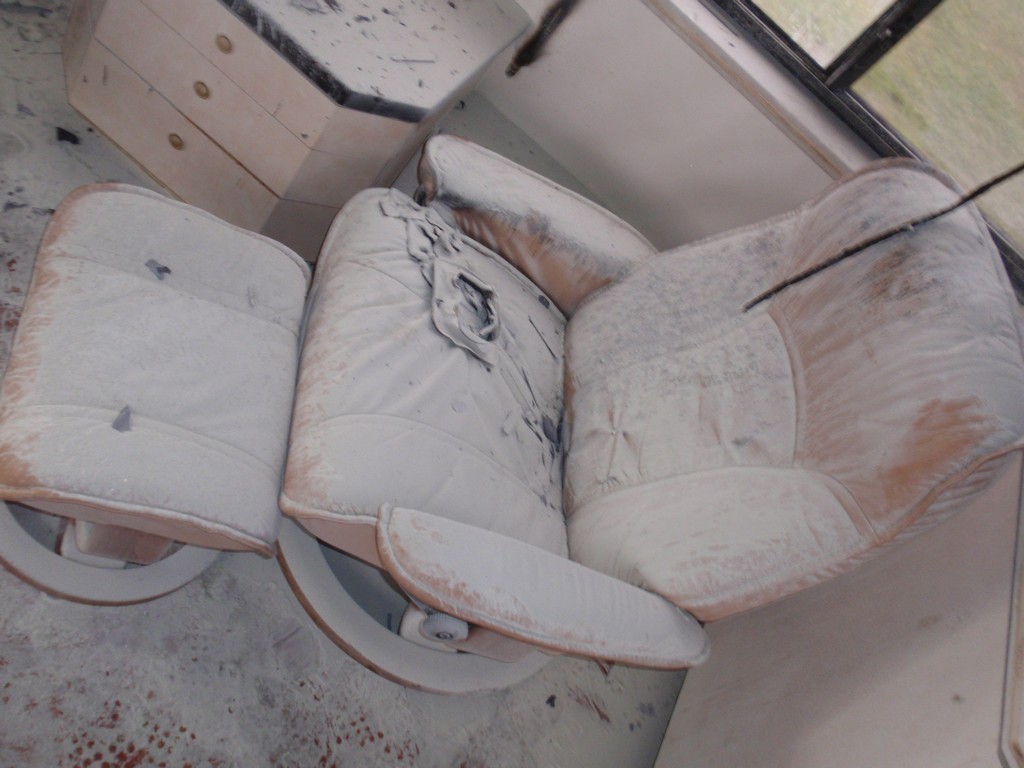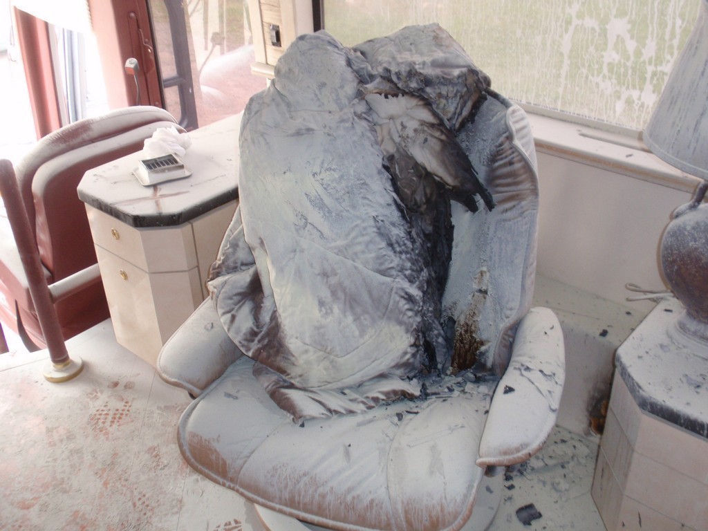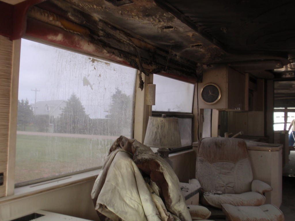 01d Prevost H3-45 Salon passenger side Burn Job before repairs