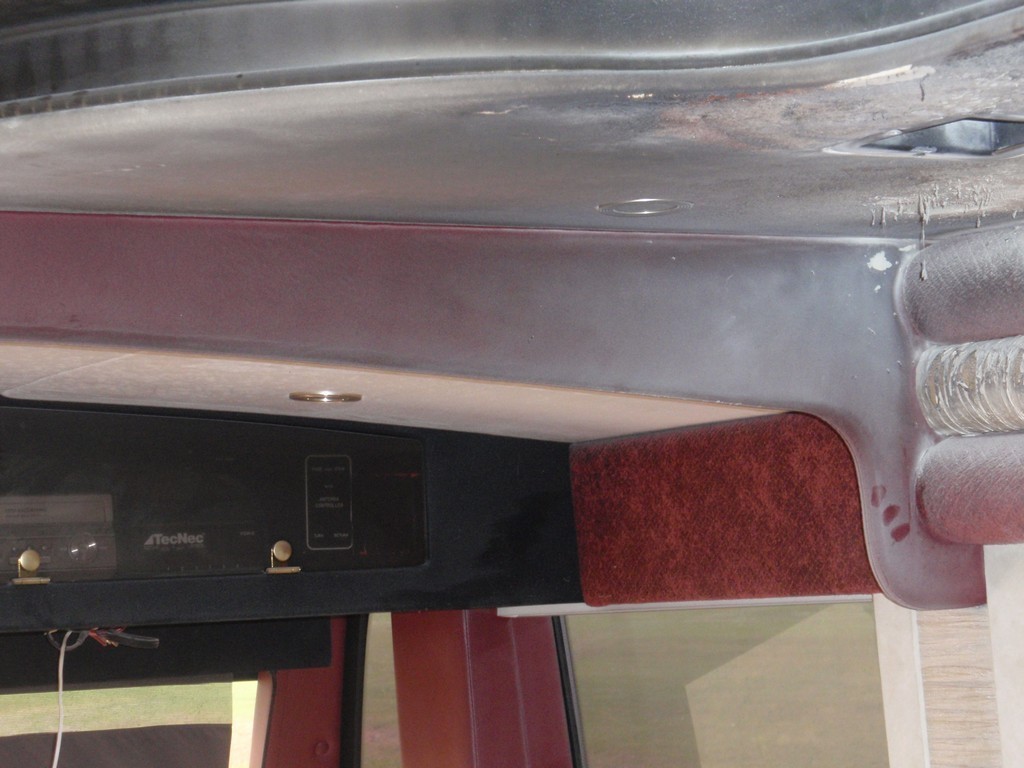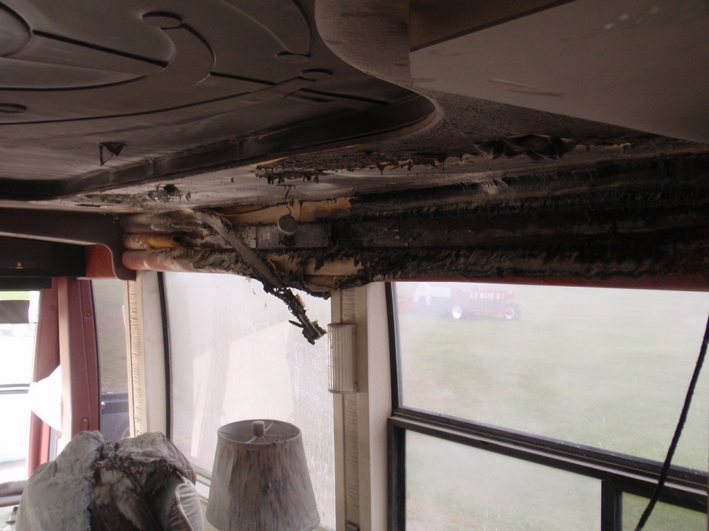 01i Prevost H3-45 Salon valance and ceiling Burn Job before repairs