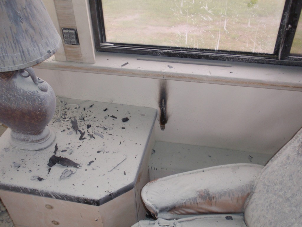 01e Prevost H3-45 Salon passenger side Burn Job before repairs