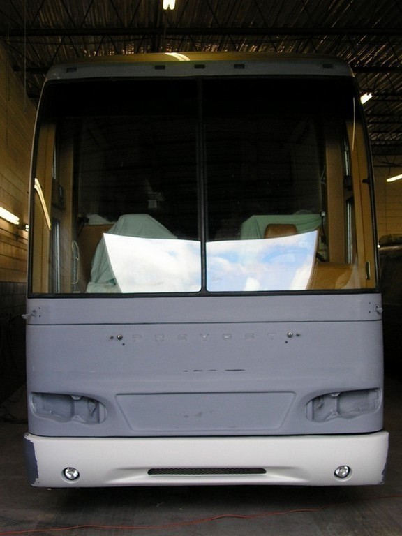 02 Prevost H3-45 Marathon Front upgrade in process by Excalibur Coach