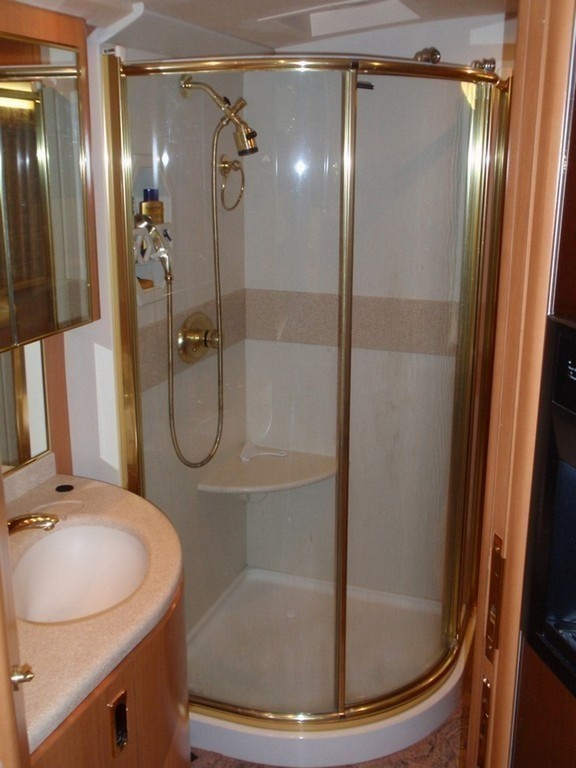 004 Prevost XL Marathon after Excalibur Coach Shower Upgrade with seat