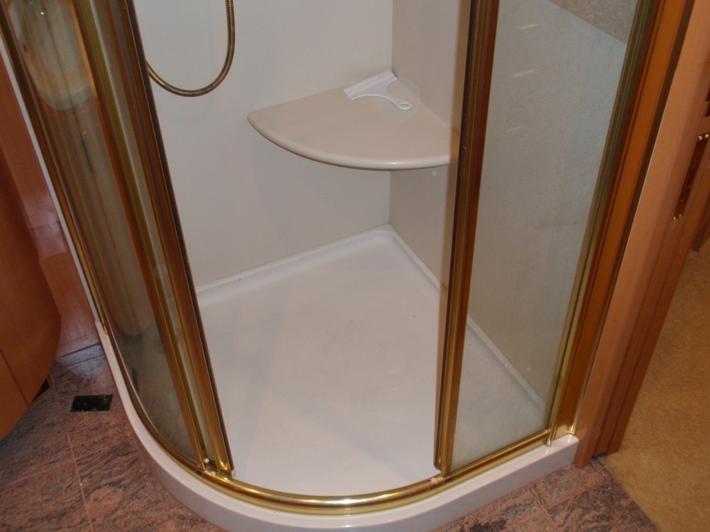 002 Prevost XL Marathon before Excalibur Coach Shower upgrade door open
