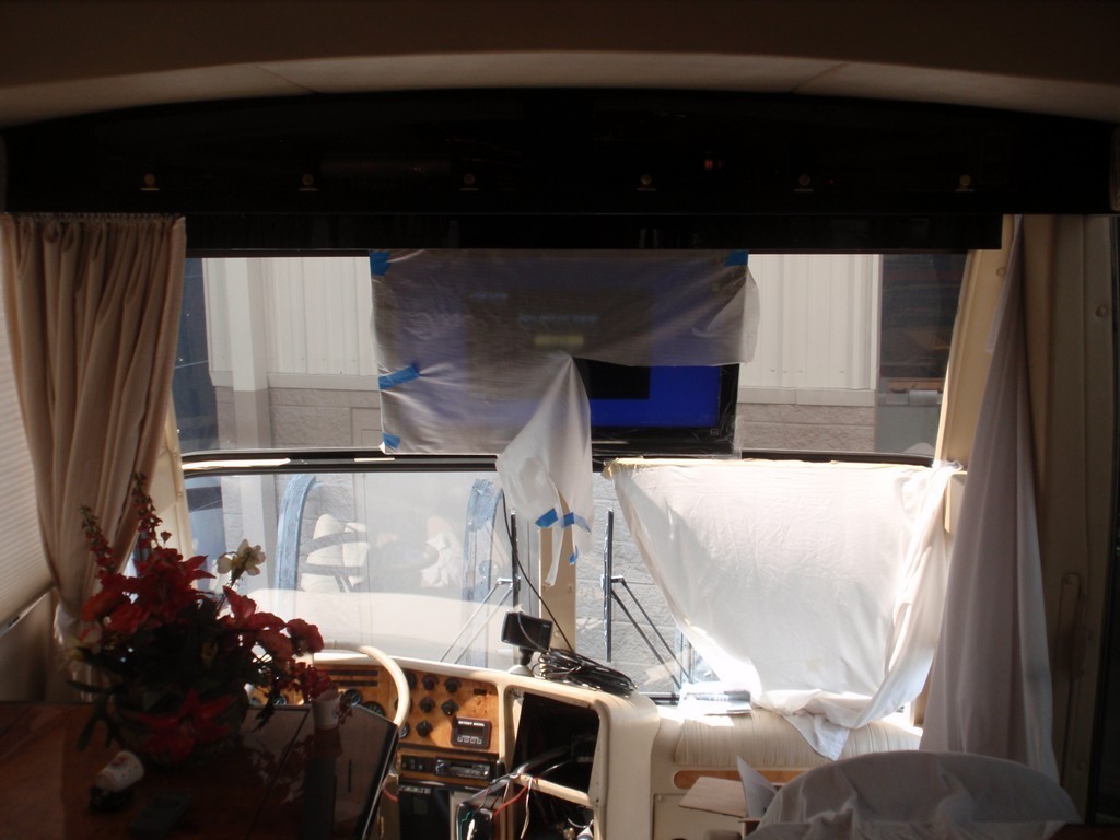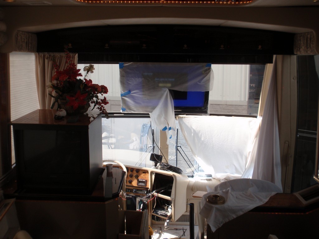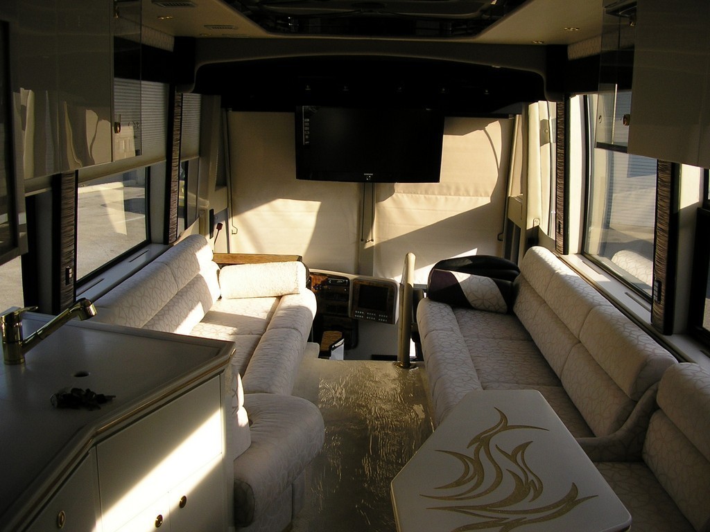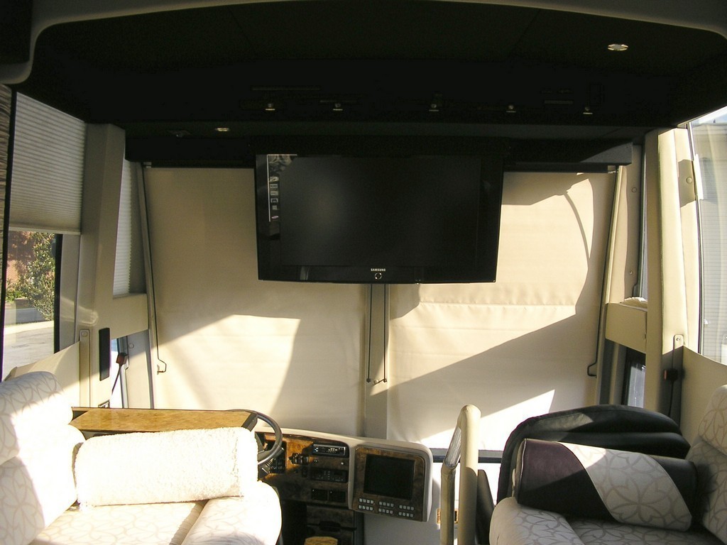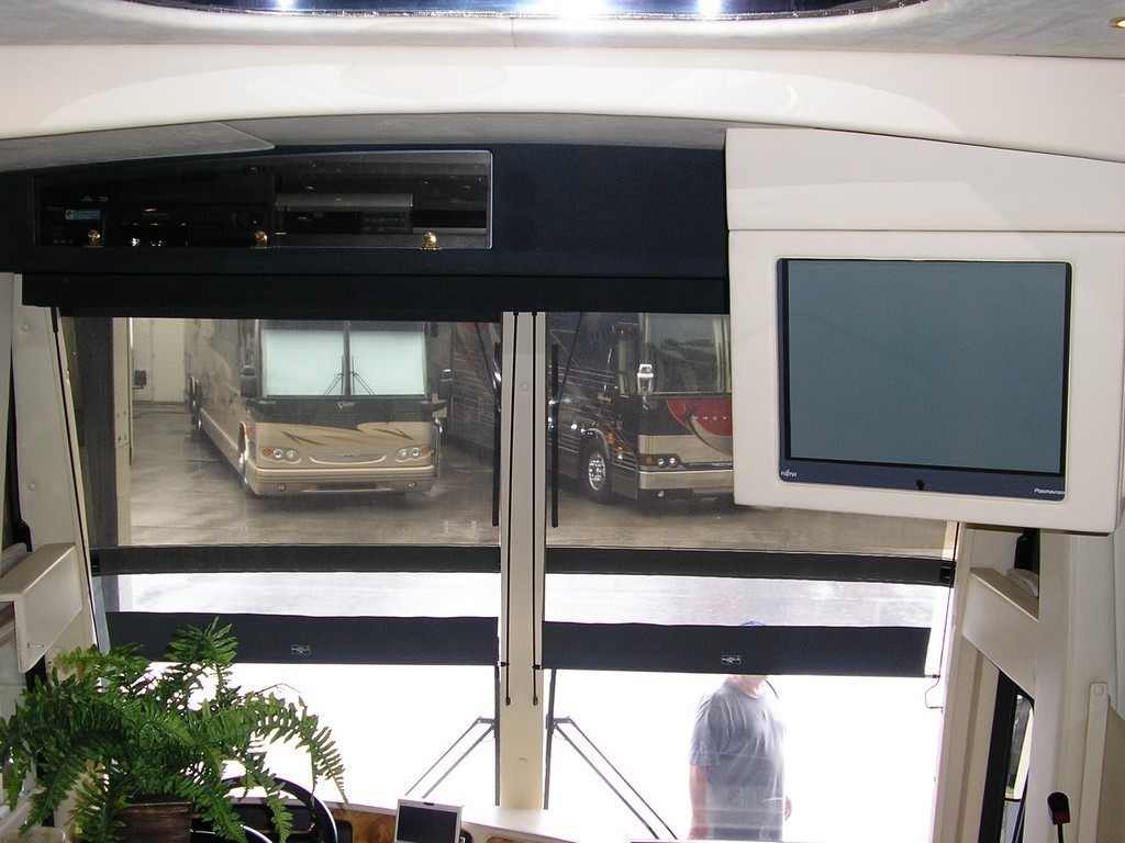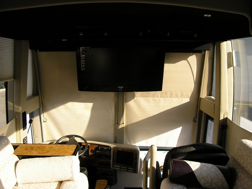 01 Prevost, XL, XLII, H3-45, Motorhome, Class A -Before custom front cabinet and TV by Excalibur Coach - TV moved from passenger side to center